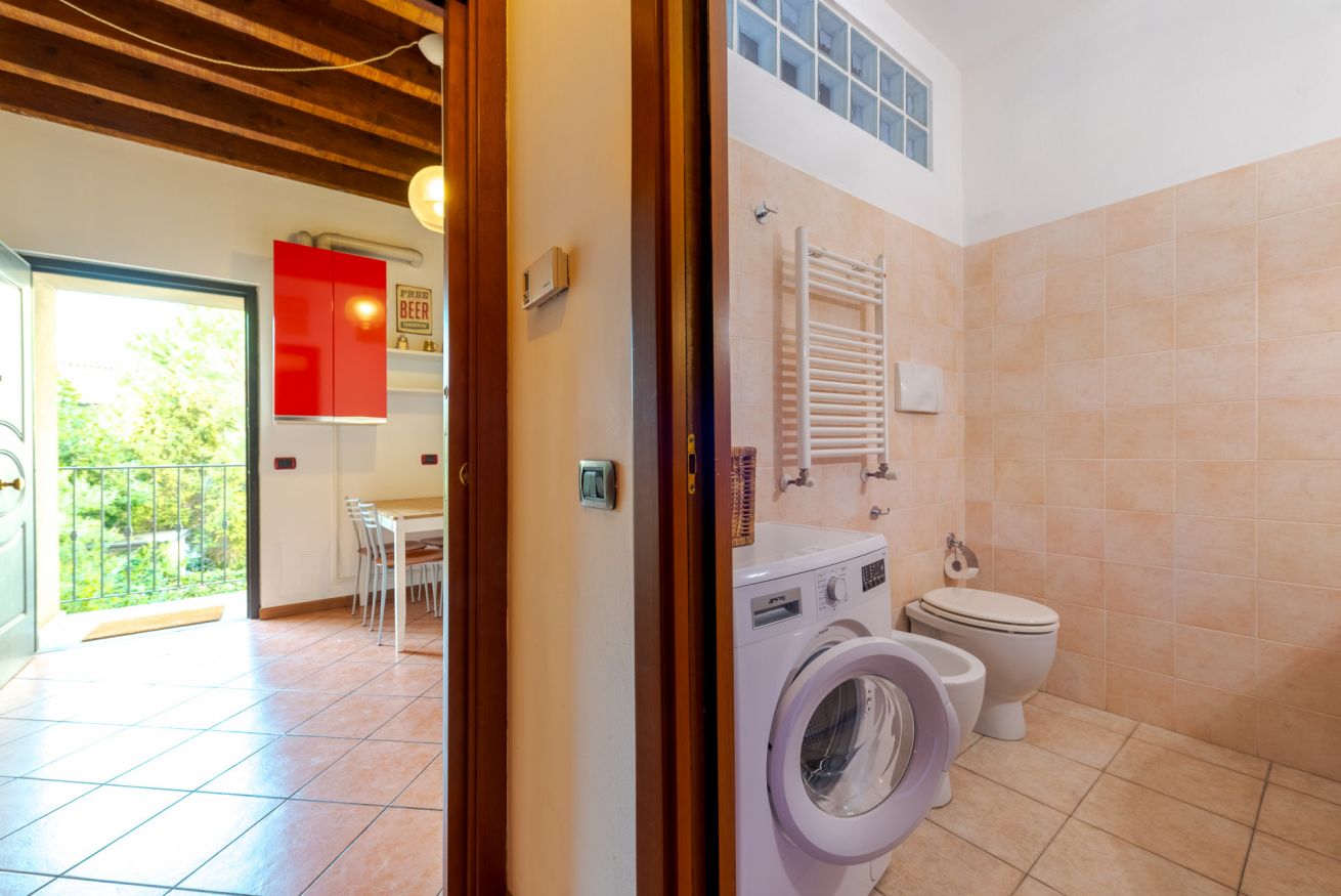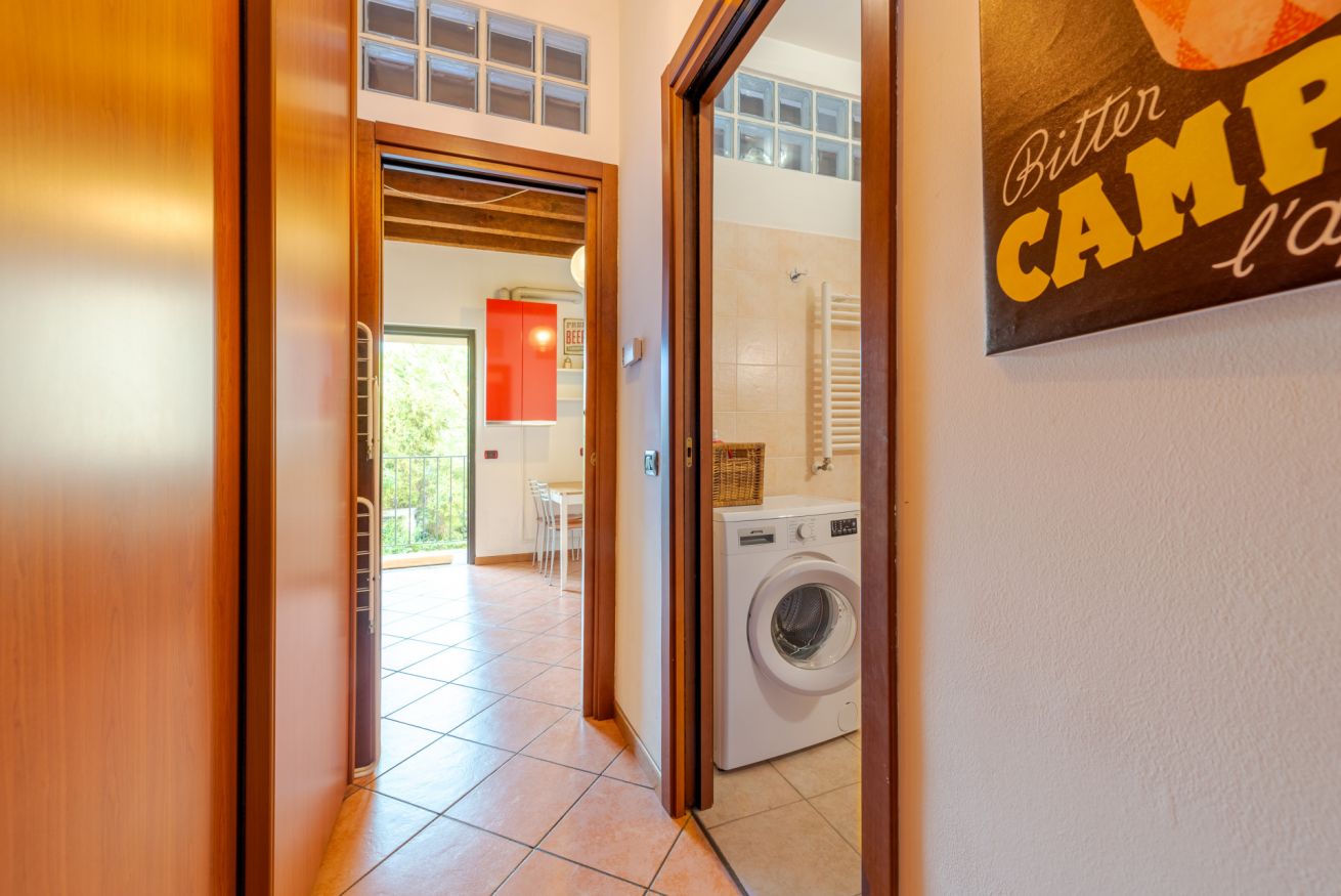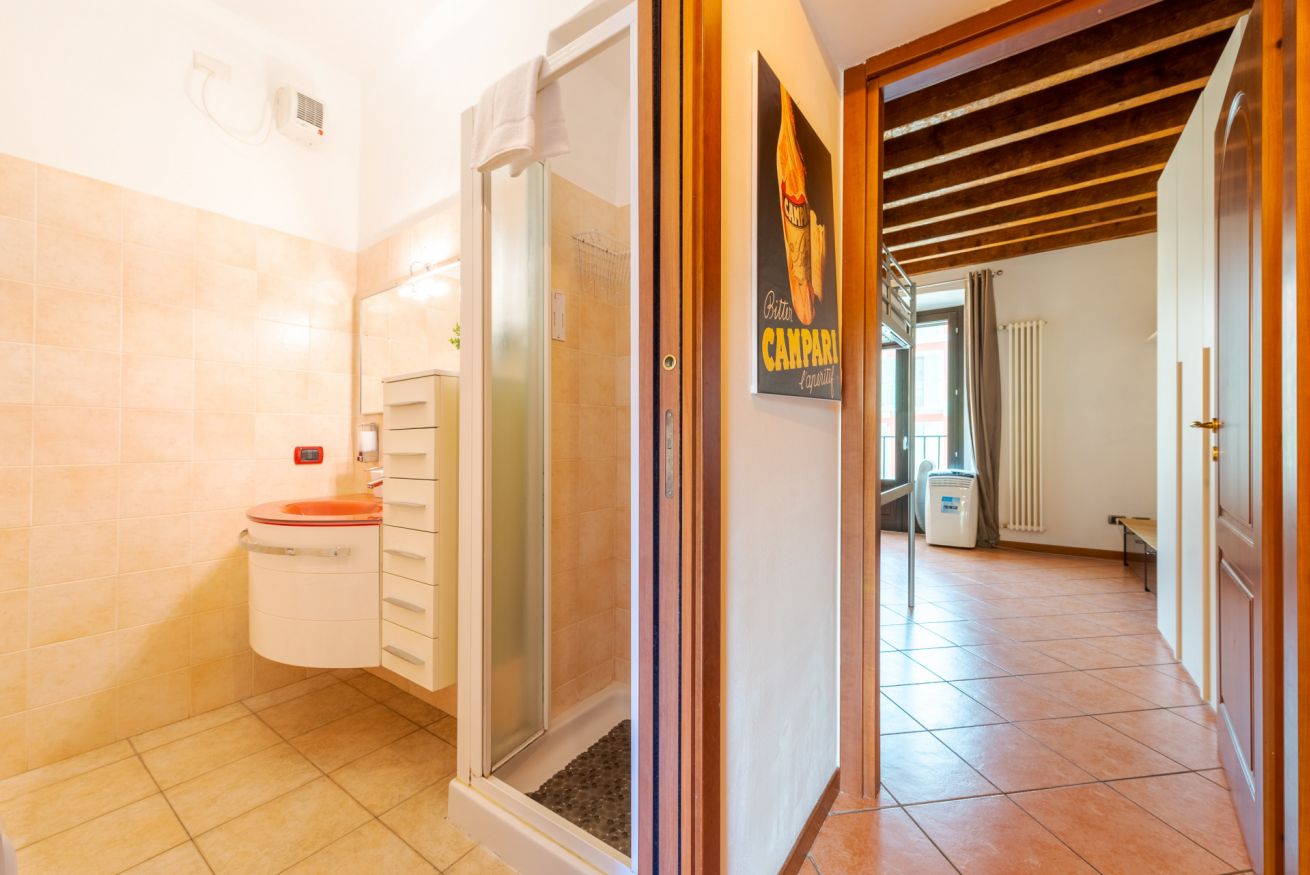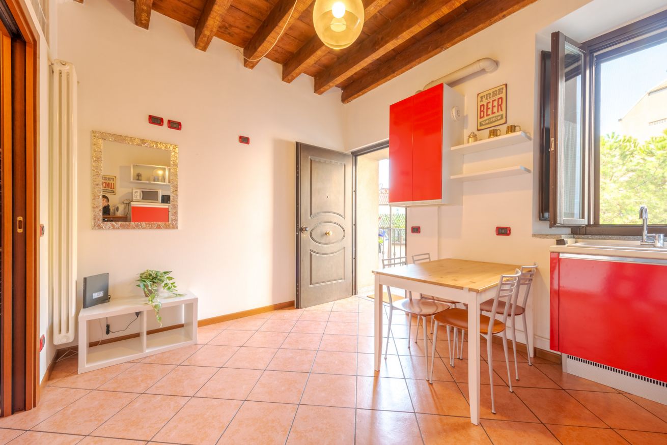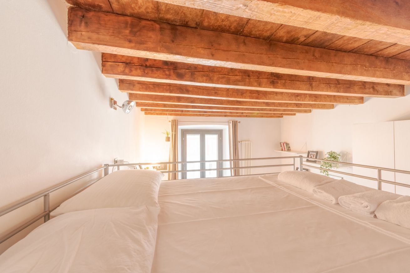 L'appartamento è un grazioso bilocale con camera da letto e salotto nello stesso ambiente ma ben separati grazie al letto soppalcato.